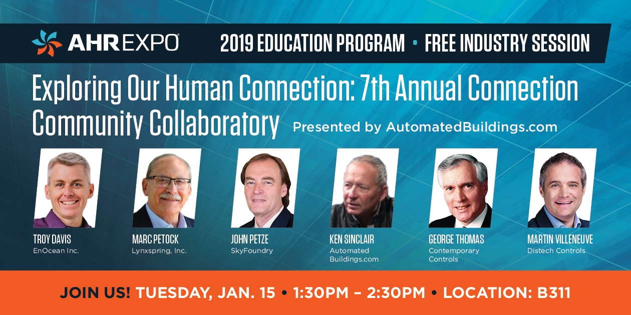 At AHR Expo 2019 in Atlanta, Contemporary Controls' President, George Thomas, will be on the panel of industry leaders participating in an education session titled, "The 7th Annual Connection Community Collaboratory".