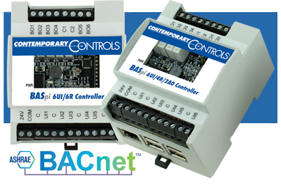 Two models are available in the BASpi-Edge series housed in compact DIN rail mounted enclosure and powered from a 24 VAC/VDC source. While both models have six universal inputs, one model has six relay outputs, and the other four plus two 0-10 VDC analog outputs. An USB port with an optional EIA-485 dongle connects to BACnet MS/TP devices.