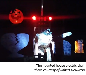 A YouTube video of the haunted house's electric chair in action can be found at https://youtu.be/-STLOn6GcS0.