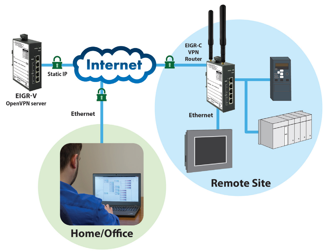 Accessing machines at remote sites over the Internet can be a challenge since firewalls block messages that originate from the Internet. Although it is possible to open up ports in the firewall by using Port Forwarding, IT professionals are reluctant to compromise the security of their network and usually decline this type of request. Without permission from the IT department, the systems integrator is left with few options. One solution to this problem is to incorporate a Virtual Private Network (VPN) service, such as Contemporary Controls' RemoteVPN subscription service.