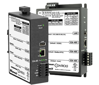 Unlike most competitors, the BASgatewayLX can be powered from 24-volts AC or DC, making it versatile for situations where a DC supply is not available. It is DIN rail or panel mounted (model dependent) with an industrial grade metal case, wide temperature range and UL508 approval; characteristics that make for a quick install in control cabinets. The optically isolated serial port allows for connection to either 2-wire or 3-wire EIA-485 networks and the Ethernet port offers a shielded RJ-45 connector. Through auto-negotiation and auto-MDIX, the BASgatewayLX automatically matches connections to the Ethernet network, allowing for either straight-through or crossover cabling. A resident web server allows for commissioning and troubleshooting via a standard web browser.